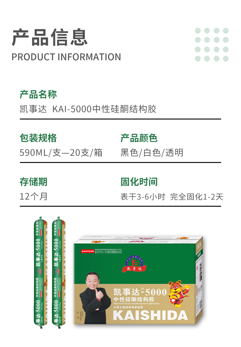 凱事達(dá)5000結(jié)構(gòu)膠適用于小型玻璃 鋁板 幕墻 陽光房 大板玻璃